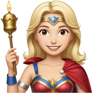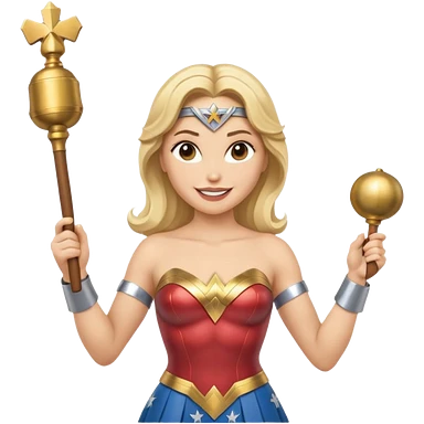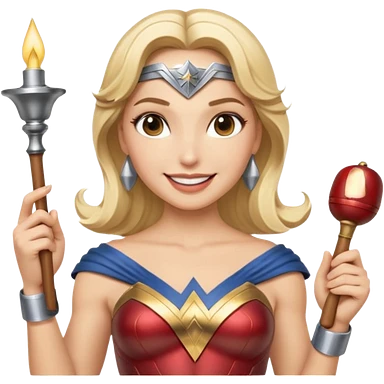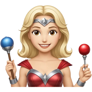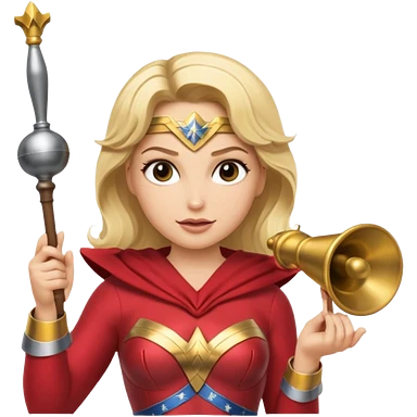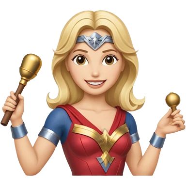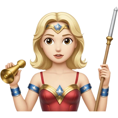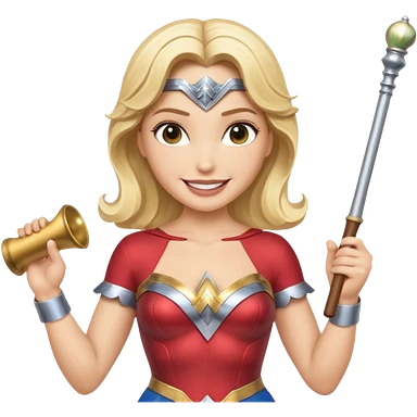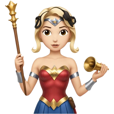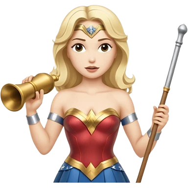 Blonde Wonder Woman holding baton and bell emoji