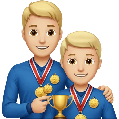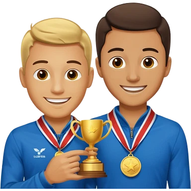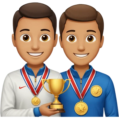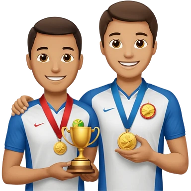 winner ceremony with one guy handing another guy a trophy. One of them having a medal around his neck. the other not emoji