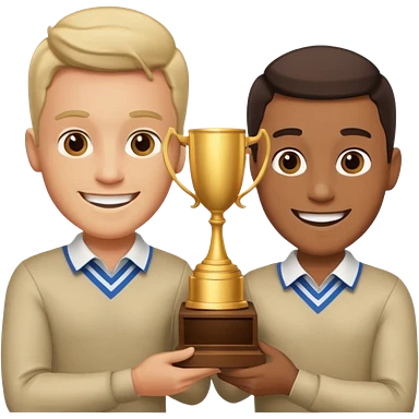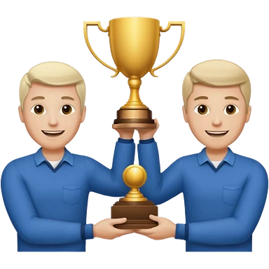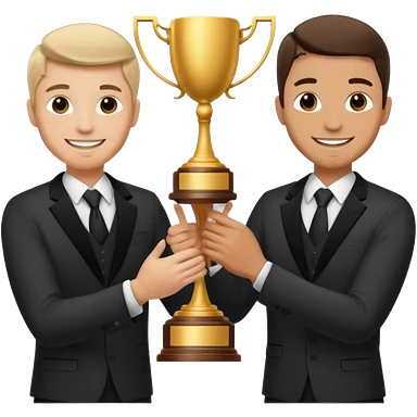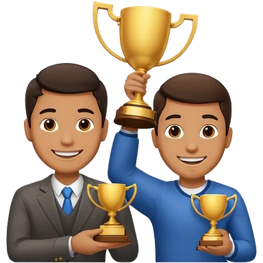 winner ceremony with one guy handing another guy a trophy emoji | AI Emoji Generator