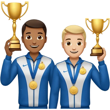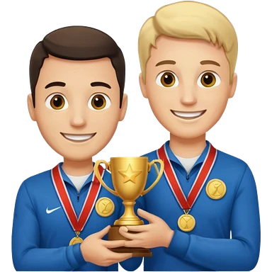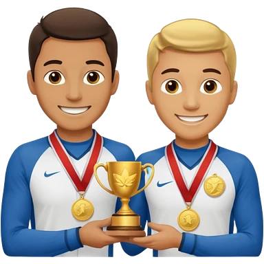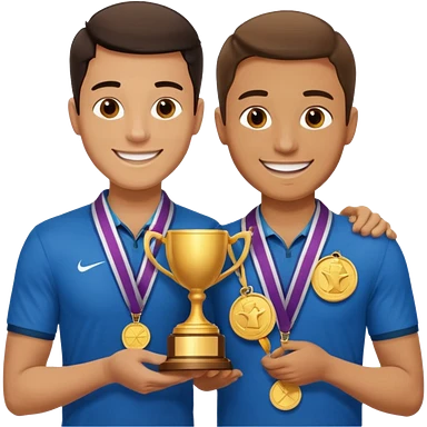 winner ceremony with one guy handing another guy a trophy. One having a medal around his neck emoji