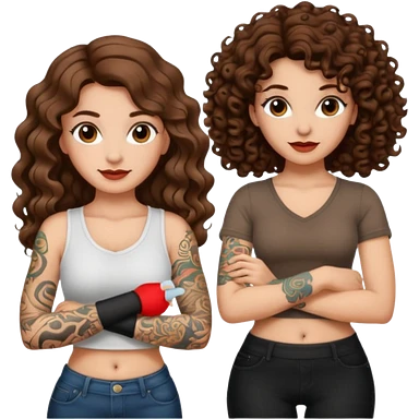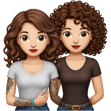 success scroll — long wavy brown hair tattooed woman and short tight curly brown hair woman — proud pose emoji