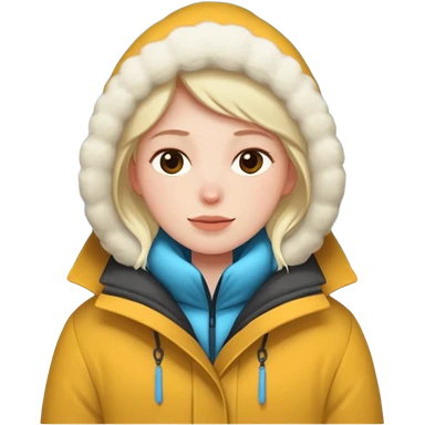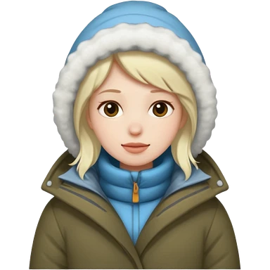 Blond Girl with blue eyes in a winter outfit with a blanket emoji