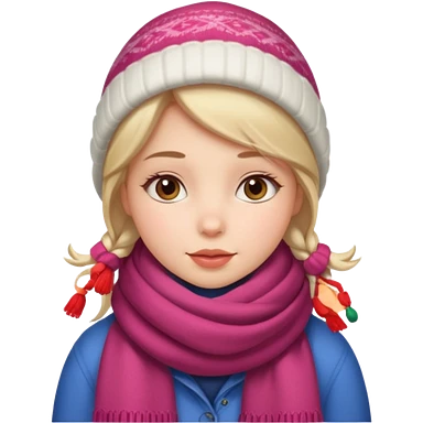 beautiful finnish blond winter girl with brown pink sweater emoji
