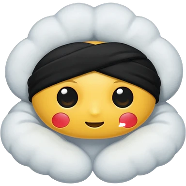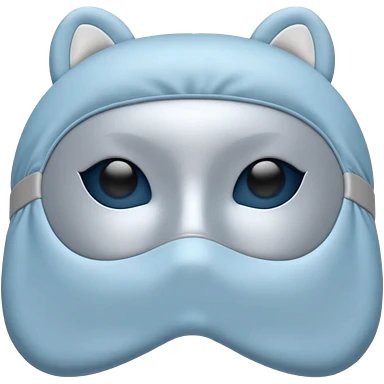 cute emoji of an isolated silky sleep mask, soft satin texture with gentle shine, light gray with pastel blue tones, embroidered sleepy eyes, no person, no face, cozy winter mood, smooth rounded shape, soft shadows emoji