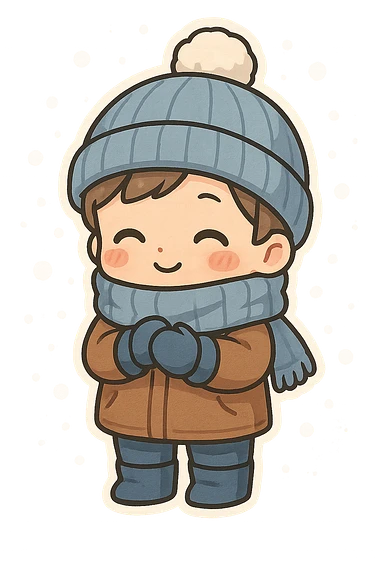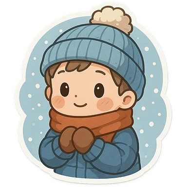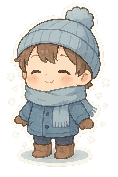 A Russian bear, stylized as a cartoon mascot, holding a balalaika, wearing a red scarf, snowy background with snowflakes and winter elements. emoji