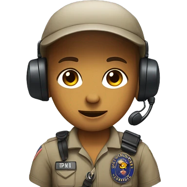 white woman operator dressed in black with a milatary helmet, without glasses, wearing a headset, ready to respond to alerts emoji