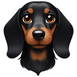 A cute small dog emoji with a wire-haired coat, black and tan coloring, medium-sized floppy ears, short legs, and expressive dark eyes. The dog should look like a mix between a Dachshund and a Yorkshire Terrier. It should have a fluffy, slightly shaggy face with more hair around the snout and eyebrows. Sitting pose, slightly tilted head, with a curious and gentle expression. emoji