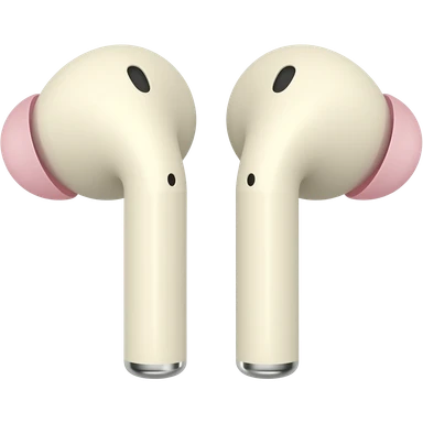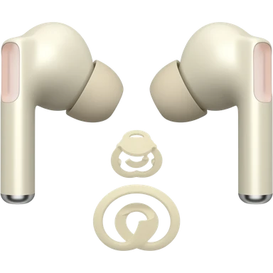 wireless earbuds, creamy beige tones, subtle pink accents emoji