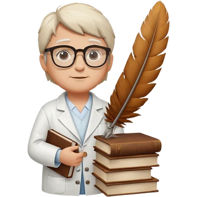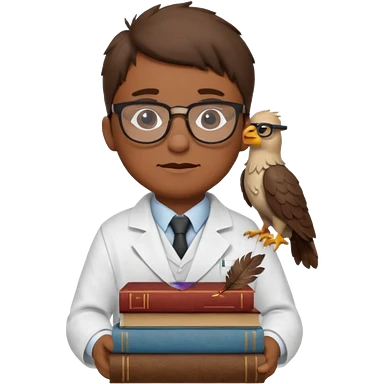 Wise bird with glasses, wearing a lab coat, perched on a stack of books. emoji | AI Emoji Generator