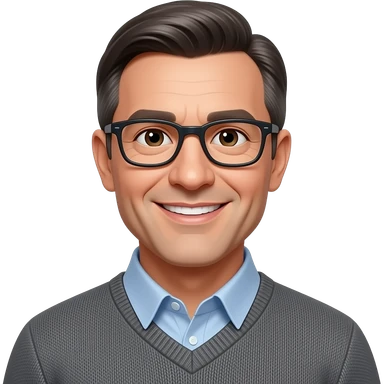 Wise counselor with kind eyes. Middle aged, dressed in a button down that is more casual than business with a cool, modern jacket on and a pair of modern glasses. His hair should be not too perfect, but a very slight bit of disheveled. He should look approachable and slightly solemn. A gentle smile. emoji | AI Emoji Generator