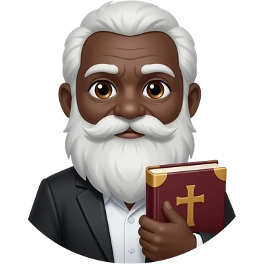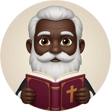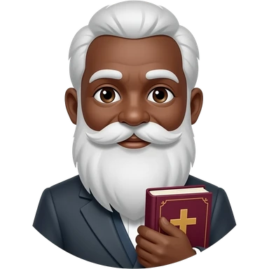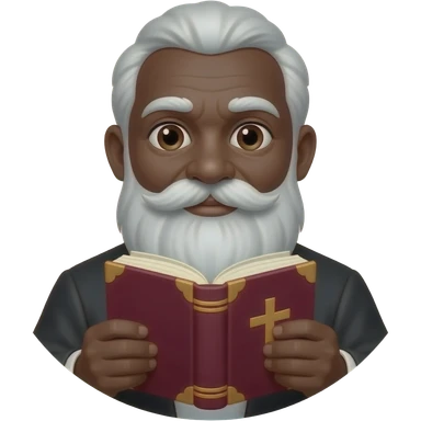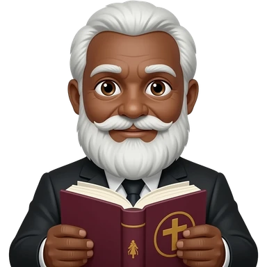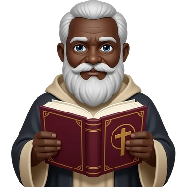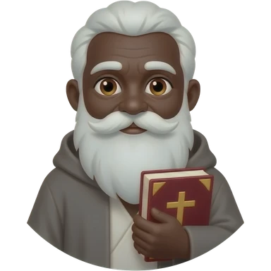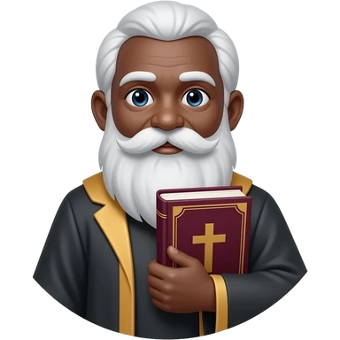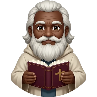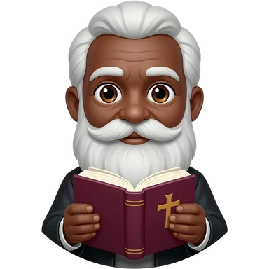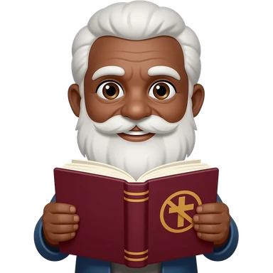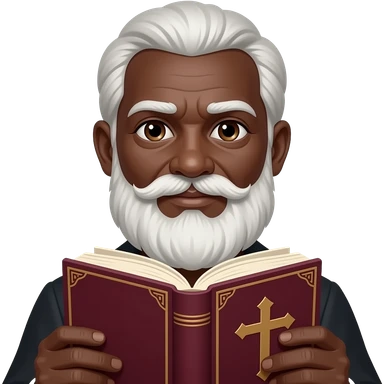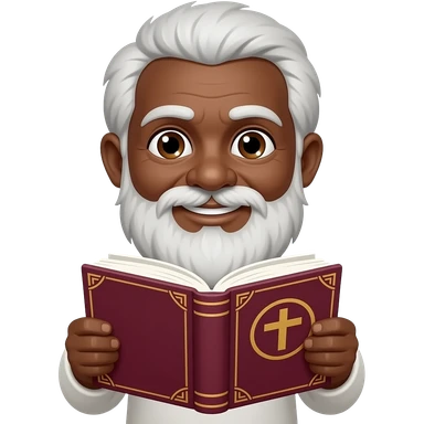 wise old man with greying white hair white beard robe black skin smile with burgundy book that has a cross on it no circle emoji