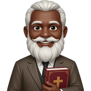 wise old man with greying white hair slight smile brown eyes white beard black skin with burgundy book that has a cross on it no circle emoji