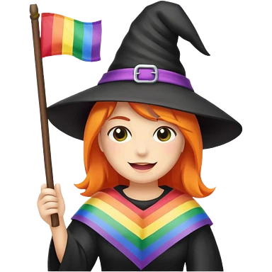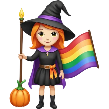 Witch holding a rainbow flag emoji