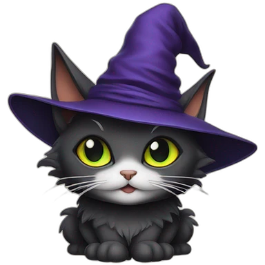 Cat with a witch hat while having a long smoke stick like a chic witch cat emoji