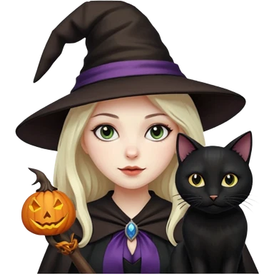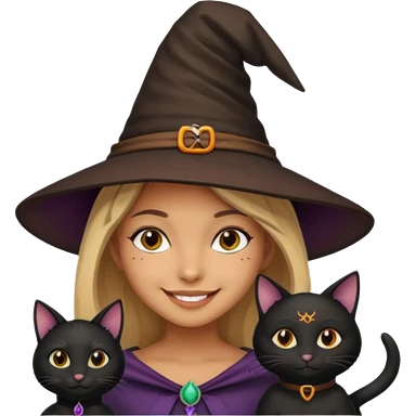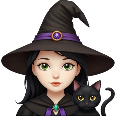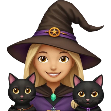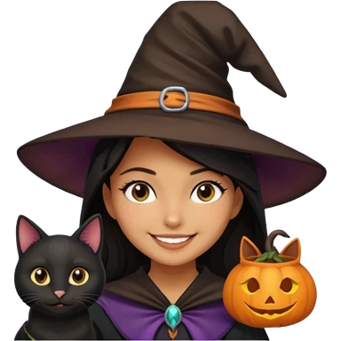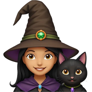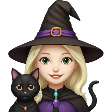 cute wolf witch emoji, smiling, wearing a pointy hat emoji