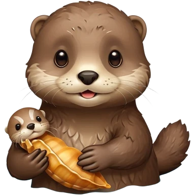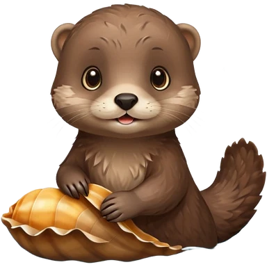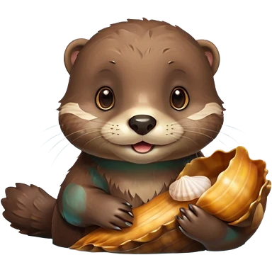 Cute Otter with glasses and top hat holding scallop shell emoji