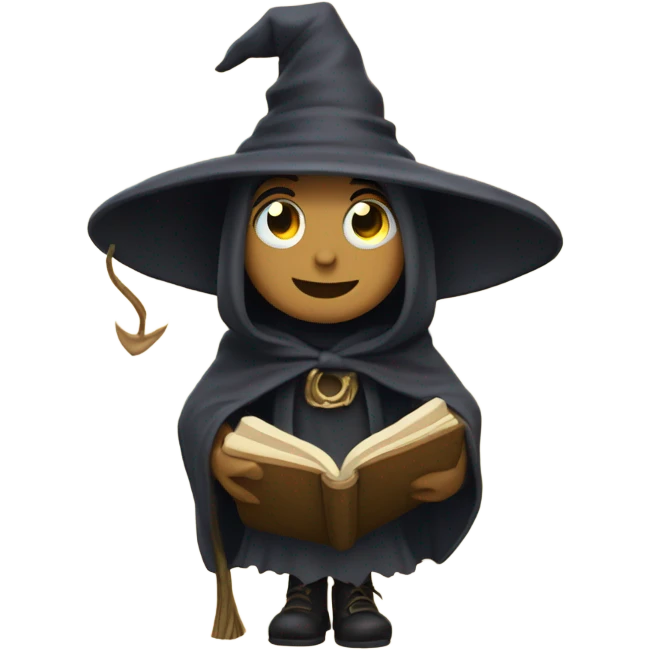 A girl with a braided hairstyle, wearing a brown witch's hat and round glasses. She is holding books in her hands. Her hair is in light green shades emoji
