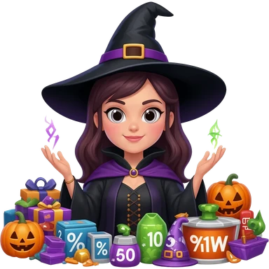 Witch who creates amazingly low prices on items for sale. Such good deals, it’s like magic emoji | AI Emoji Generator
