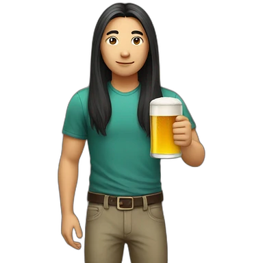 Man with straight short hair with glasses and stub. Woman with straight dark hair with glasses with beers in hand in Berlin emoji