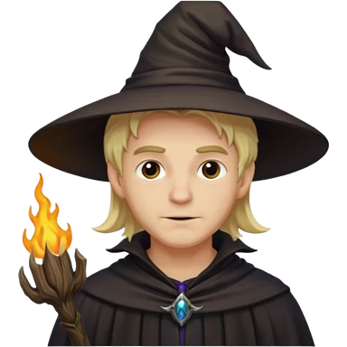 young boy with green eyes and dirty blonde curly hair having a witch hat on his head emoji