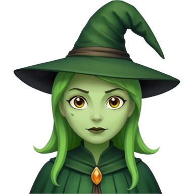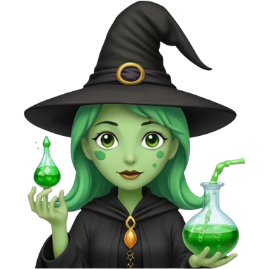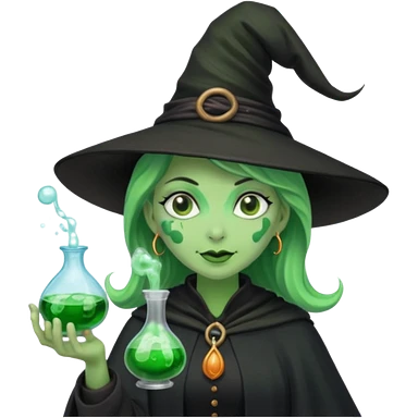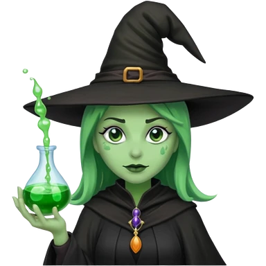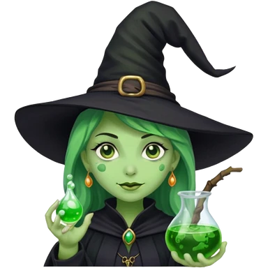 Witch with Green Skin – long-nosed witch in black hat holding potion emoji
