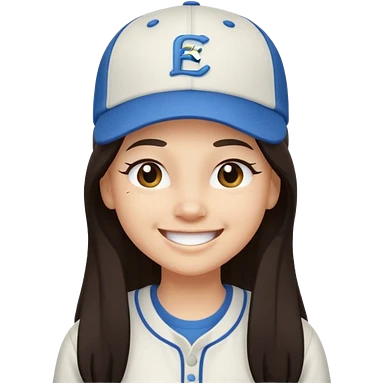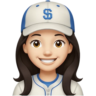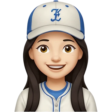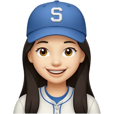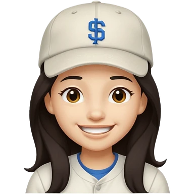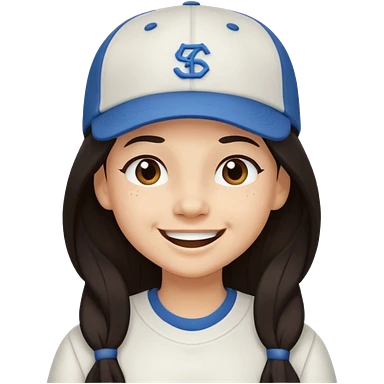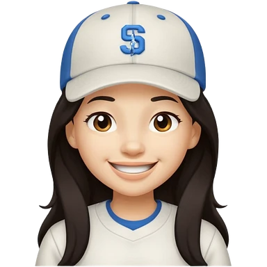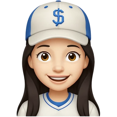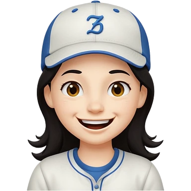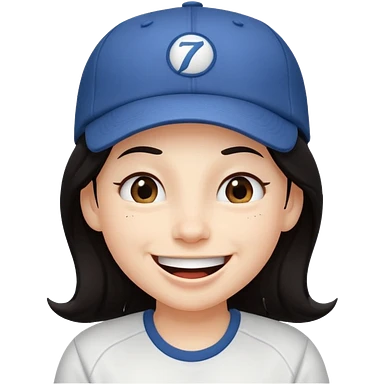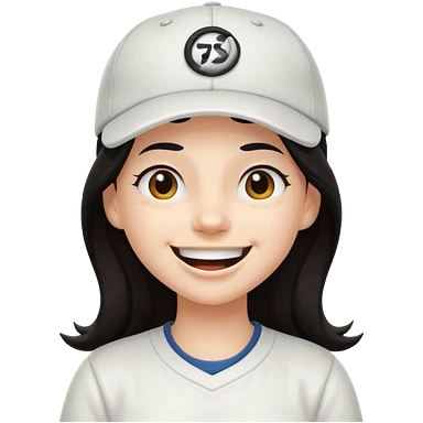 Digital illustration of a cartoon character with a big smile on its face and whinking. The character has long dark hair and is wearing a white baseball cap and casual clothes. The overall style of the illustration is cute and playful. emoji
