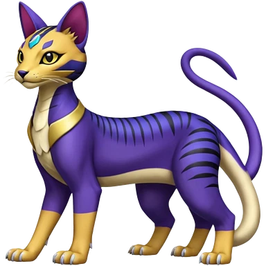 Egyptian furry hyper-realistic colorful Bastet-Liepard-Noibat-Gatomon-Garchomp-Digimon-Fakémon-Pokémon-creature (full body) emoji