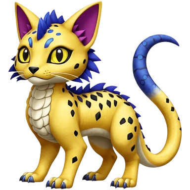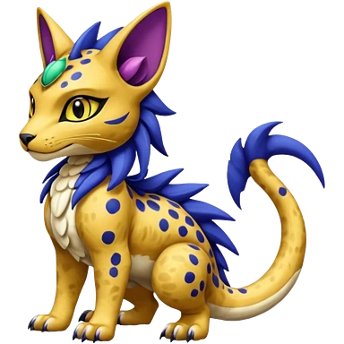 with black rosette-splotches, scaley Bastet-Liepard-Noibat-Gatomon-Garchomp-Digimon-Fakémon-Pokémon-creature (full body) emoji