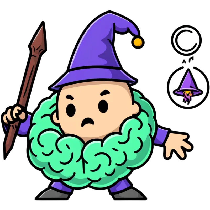 wizard battling a brain with magic image | AI Emoji Generator