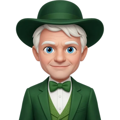 The Wizard from The Land of Oz with blue eyes, white hair, dark green hat, green suit with bow tie emoji