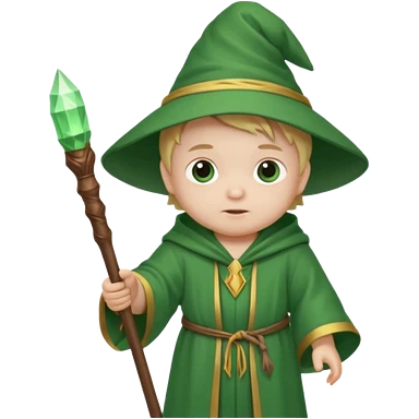 baby wizard with green robe and staff emoji