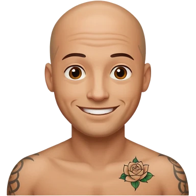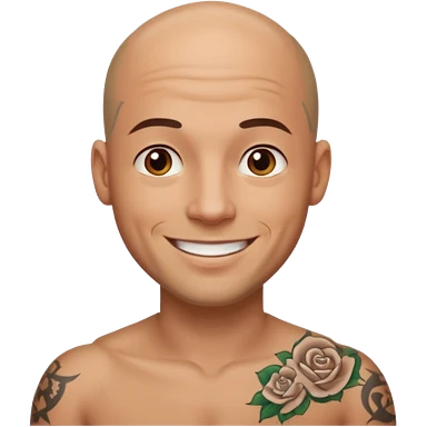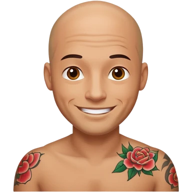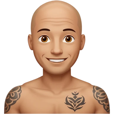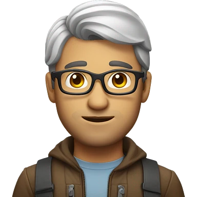 A handsome man with fair complexion. masculine, roman, slightly crooked nose. Thick triangular eyebrows. Hooded eyes and black pupils. smily lips with a heavy top lid. thick black hair 80/20 part with an undercut. emoji