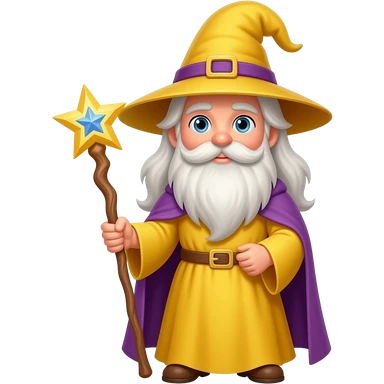 wizard in vibrant yelllow ddress with magic stick and beared emoji