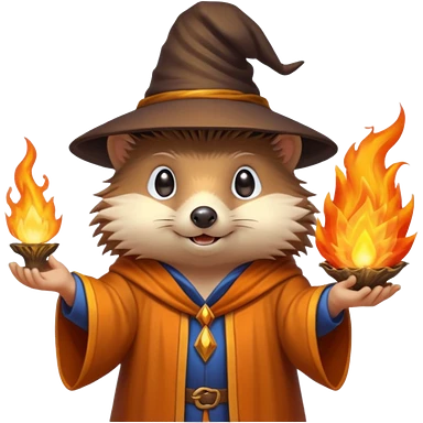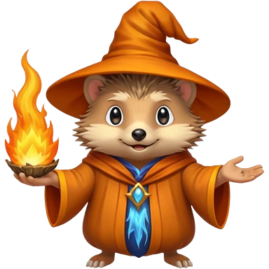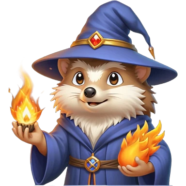 wizard pig summons fire in one hand blue cape emoji | AI Emoji Generator