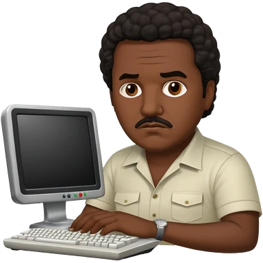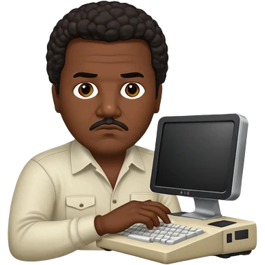 A wizard with a pointed hat and robe using a computer, tech wizard emoji