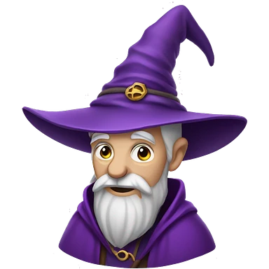 Create an emoji of a wizard. They wizard should have a big dark purple beard. And a magician hat. The wizard should have small cirkels as eyes and a slightly happy expression emoji