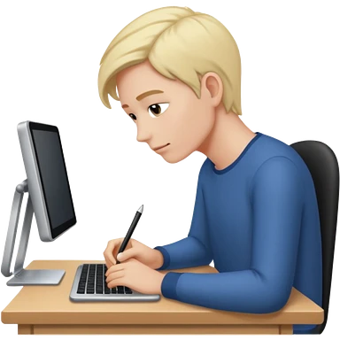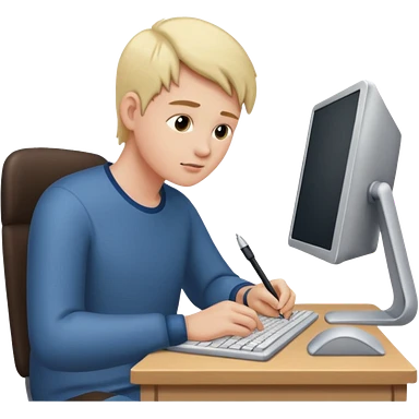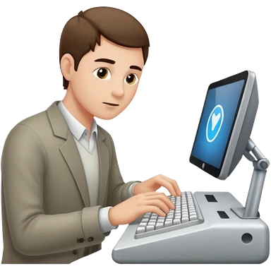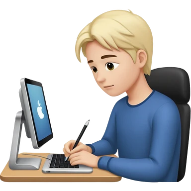 A wizard with a pointed hat and robe using a computer, tech wizard emoji