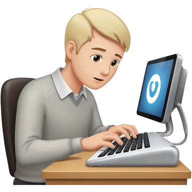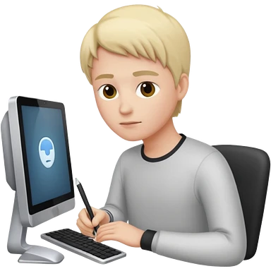 An emoji representing a wizard wearing a hoodie, sitting in front of a computer with lines of code floating around them. emoji