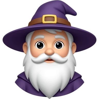Middle aged wizard with a purple cloak, short white hair and a medium sized white beard waving hello emoji