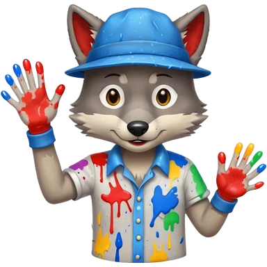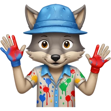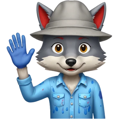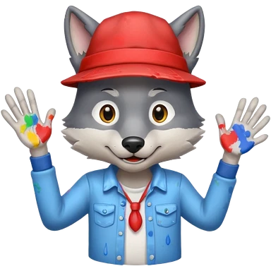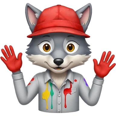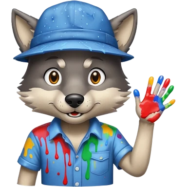 Wolf cartoon shaking hand wering hat and paint shirt children version emoji
