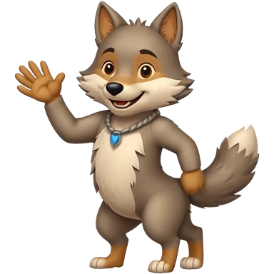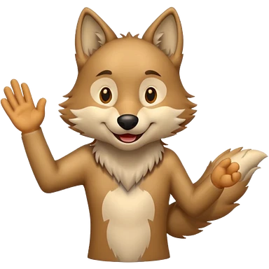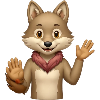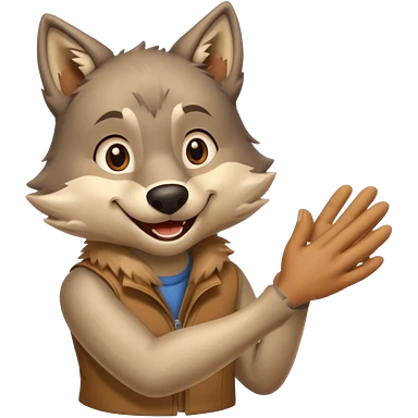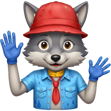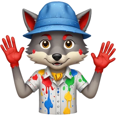 Wolf cartoon shaking hand wering hat and paint shirt emoji