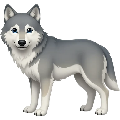 Gray wolf with a very large pregnant belly, standing on all fours, fluffy tail emoji