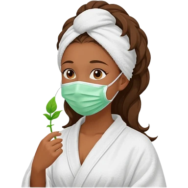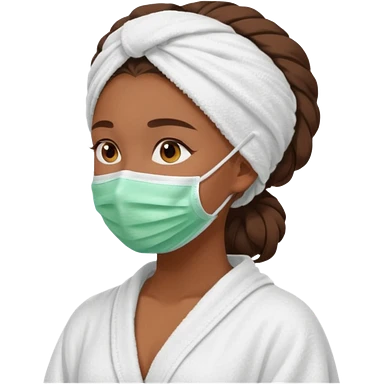Tanned girls side profile in robe and her hair in a towel with a face mask on emoji