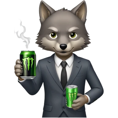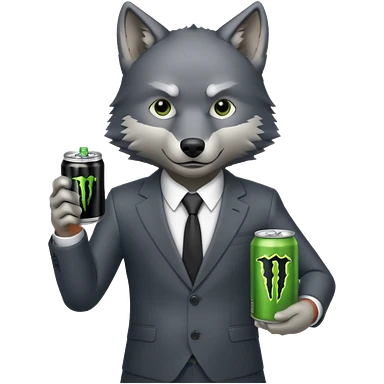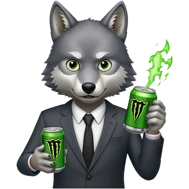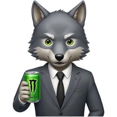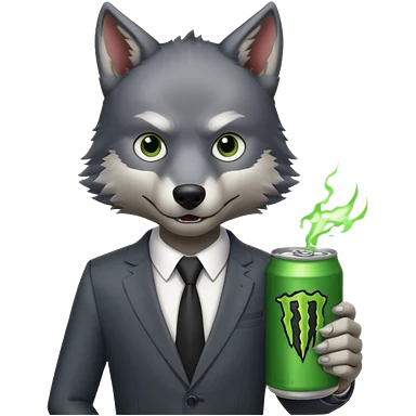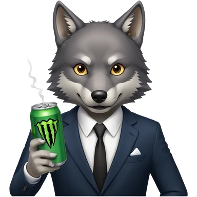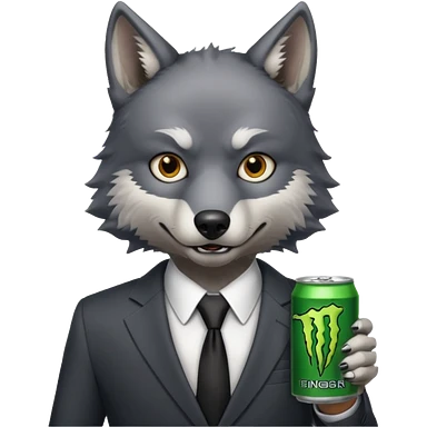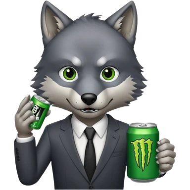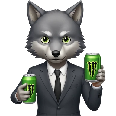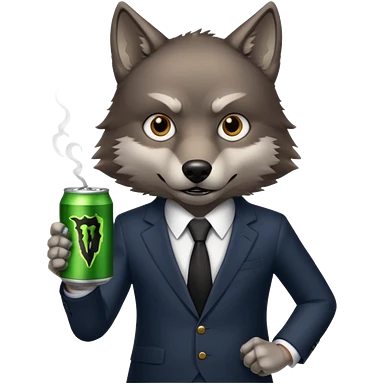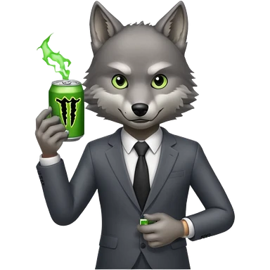 wolf in business suit, holding a monster energy can emoji