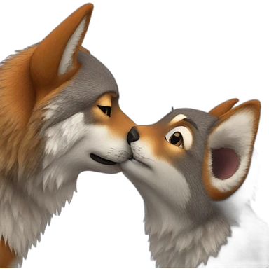Old Wolf kisses a white Bunny who has pink ears, with big red heart between them emoji