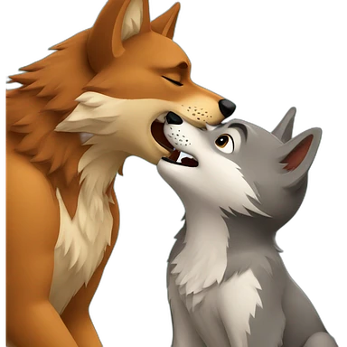 Old big Wolf kisses a white little Bunny who has pink ears, with big red heart between them emoji