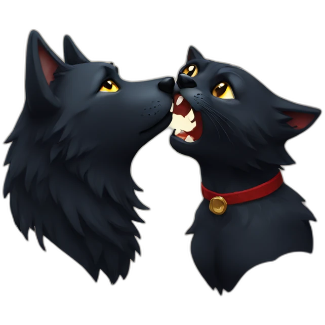 Wolf kissing a black cat emoji | AI Emoji Generator
