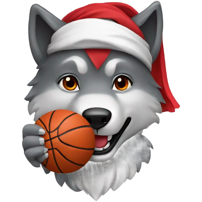 Wolf with a red headband on holding a basketball emoji | AI Emoji Generator