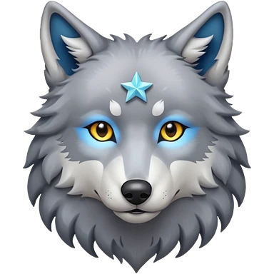 wolf with night sky as skin and star on forehead emoji