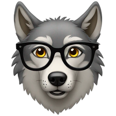 Grey wolf with black paws, black muzzle, black tail. with blue eyes. full body emoji